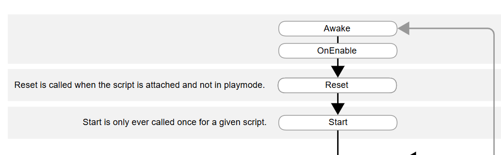 위 이미지는 Order of execution for event functions (이벤트 메서드 순서)의 플로우차트 일부분으로,