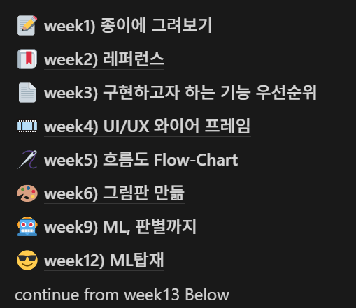 시간이 많지는 않았기에, week 1 ~ 3 동안 설계와 동시에 간단한 기능 정도는 같이 개발하며 진행했었습니다.