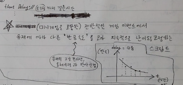 유저의 반응속도 Delay를 매개변수로 하여 지속적인 난이도 조정